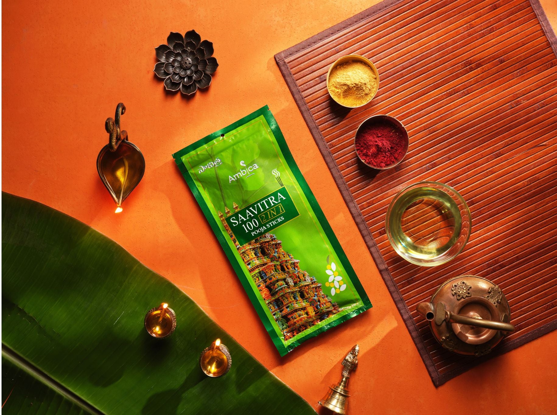 Ambica Saavitra 100 2in1 combines the delicate fragrance of floral notes with the warm, rich aroma of amber agarbatti, creating a soothing and serene atmosphere for your spiritual practices. This perfect blend of floral and amber fragrances enhances your meditation, prayers, and daily rituals, helping to purify the air and promote relaxation.